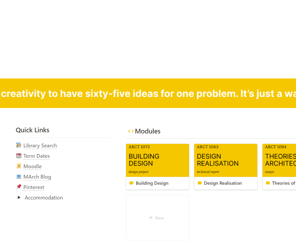 I've set up my own system for research that combines note-taking and collecting resources or references from the Internet. Of course, I'm using Notion but you can do something similar in other apps like Roam Research or Evernote. If you'd like to learn how to set up a system like this, you can book a 1 hour session with me where I'll walk you through the basics of Notion and using it as a MArch student.