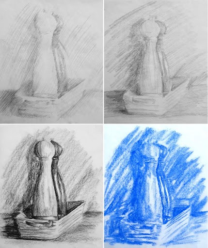 Because of this time restriction, I suggest you also start with something small. Start with one or two objects, set a timer and try to get across what it is within 30 seconds. Draw the same object three or four times before moving onto the next one. The more you draw it, the faster you learn to observe, meaning you can begin to try to add shading within that same 30 seconds. Try different shading techniques to see what works for you and what you like!