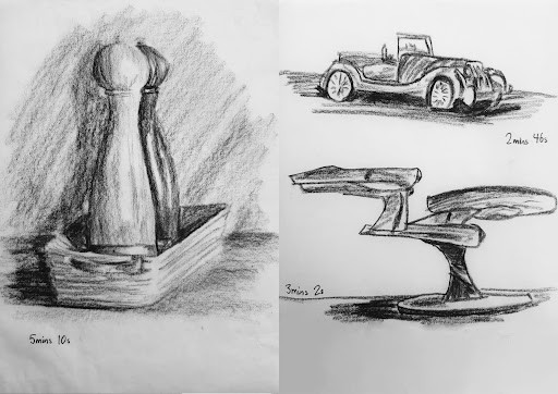 The idea is to stop you from getting too invested in getting all the details down with perfect precision. To get good at quick observational sketches, you need to be able to get the idea of whatever you are drawing across quickly. If you are drawing a table, it just needs to look like a table, you don’t need to show every detail on the table leg and every slight change in shading.