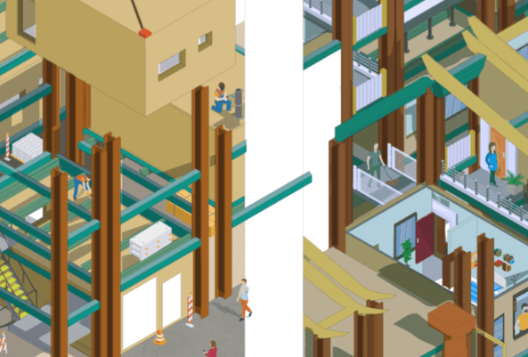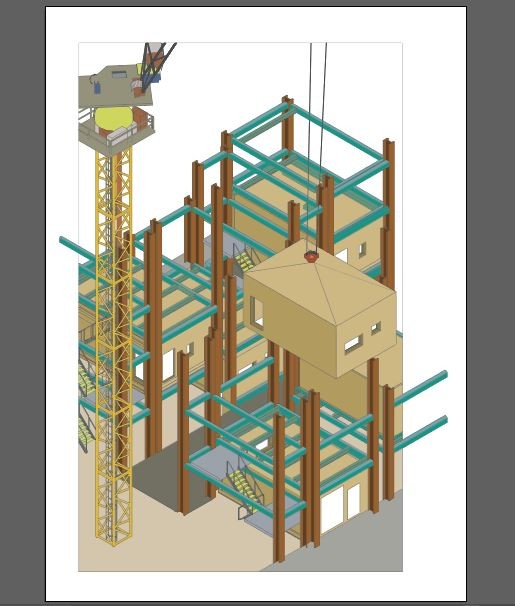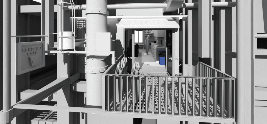 We’re using a 3D model as a base for this image and any other illustrations. This isn’t compulsory, but if you’re already modelling your building and are planning on using it for other purposes, it can be easier to do it this way. The other alternative is to come up with illustrations based simply off a sketch or your imagination. Usually these aren’t to scale so there aren’t any restrictions, but a model can help with overall measurements and figuring out the scales of walls or objects. If you’re here for just the adding colour part of the tutorial, skip ahead here.