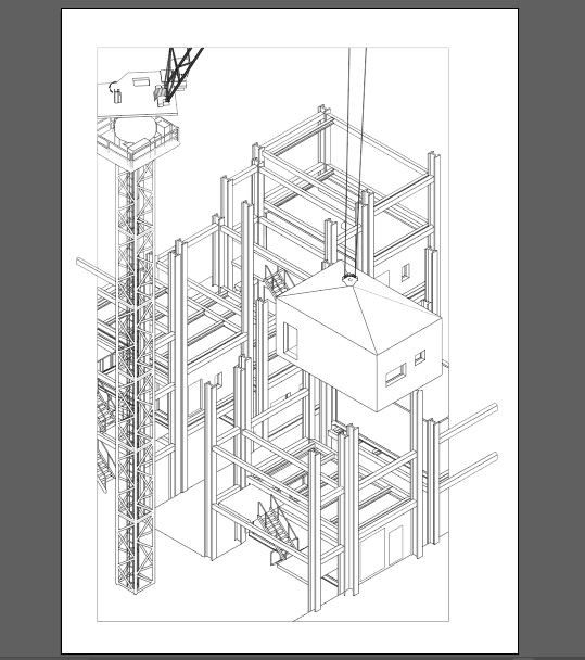 After exporting the saved scene as a line drawing, you need to go over and check it for any missing or extra lines. The hidden line feature in Sketchup sometimes misses over objects that haven’t been classified as a 3D object such as lines. From experience, AutoCAD is much easier and quicker than Illustrator, but both do the job in the end. The reason for this is that the ‘trim’ tool in AutoCAD makes life so much easier because you can get rid of lines efficiently. Here, you can also set up the page view. For example, in the image below, there were some elements that stuck out of the ‘border’ which made it seem a bit more 3D and gave it an edge.