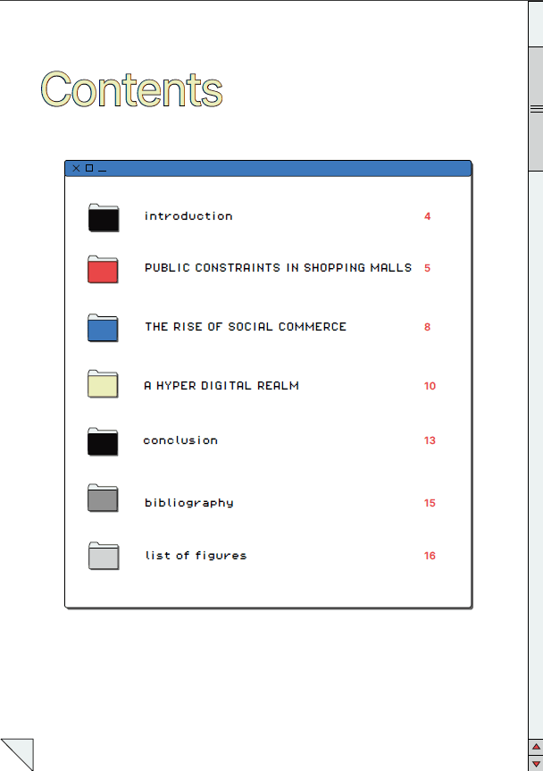 As I mentioned previously, the creativity and design of your essay is also included in the mark scheme so do take your time to try and spice things up and make it look visually interesting. For my 4th year essay on Shopping Sites, I used a graphic style of retro computer illustrations to frame my essay as if it were an old webpage. I used coloured icons for each of my chapters and even created a scroll bar for each page. The design itself doesn’t need to be complicated, just interesting enough so that it looks like you’ve thought about the context and really put in some effort.