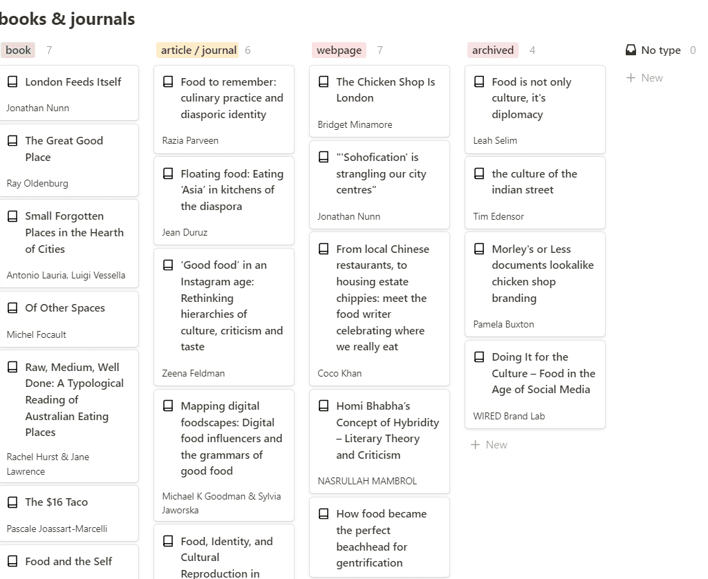 You can also copy the in-text citations to use whenever you need them so you don’t have to worry about writing them out each time. Finding tools like this really does make your life easier and can help you be more organised. For note-taking purposes, I try to do a similar thing in Notion by creating a gallery database and sorting by types of sources i.e. books, websites and articles. Then I can go inside each page and make notes of my own to then use throughout the essay.