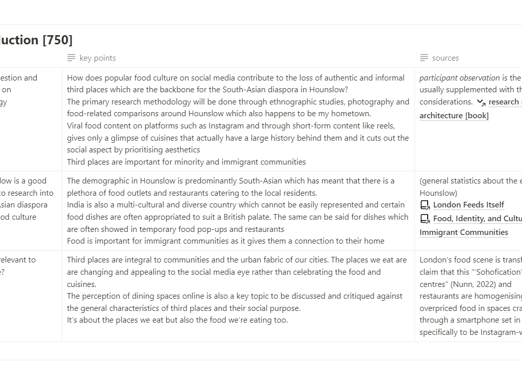 Reading other essays also helps quite a bit because you begin to put on your academic hat. Do try to avoid using unneccessary jargon to make your points seem complicated. I think if you’re leaning towards saying stuff in a complicated way, try and find synonyms for the word you’re trying to replace without sounding repetitive - I do this a lot! If you don’t know where to begin on finding essays, this can be something you could request from your module coordinator or even speak to students in the years above you if you can have a look. When reading other architecture essays, don’t just focus on the text itself but have a look at the structure and the kinds of things you can learn from it. For example, writing about the methdology of your research in the first chapter can set the structure for the essay going forward as it’ll help you get a better sense of the order in which you need to present your findings.