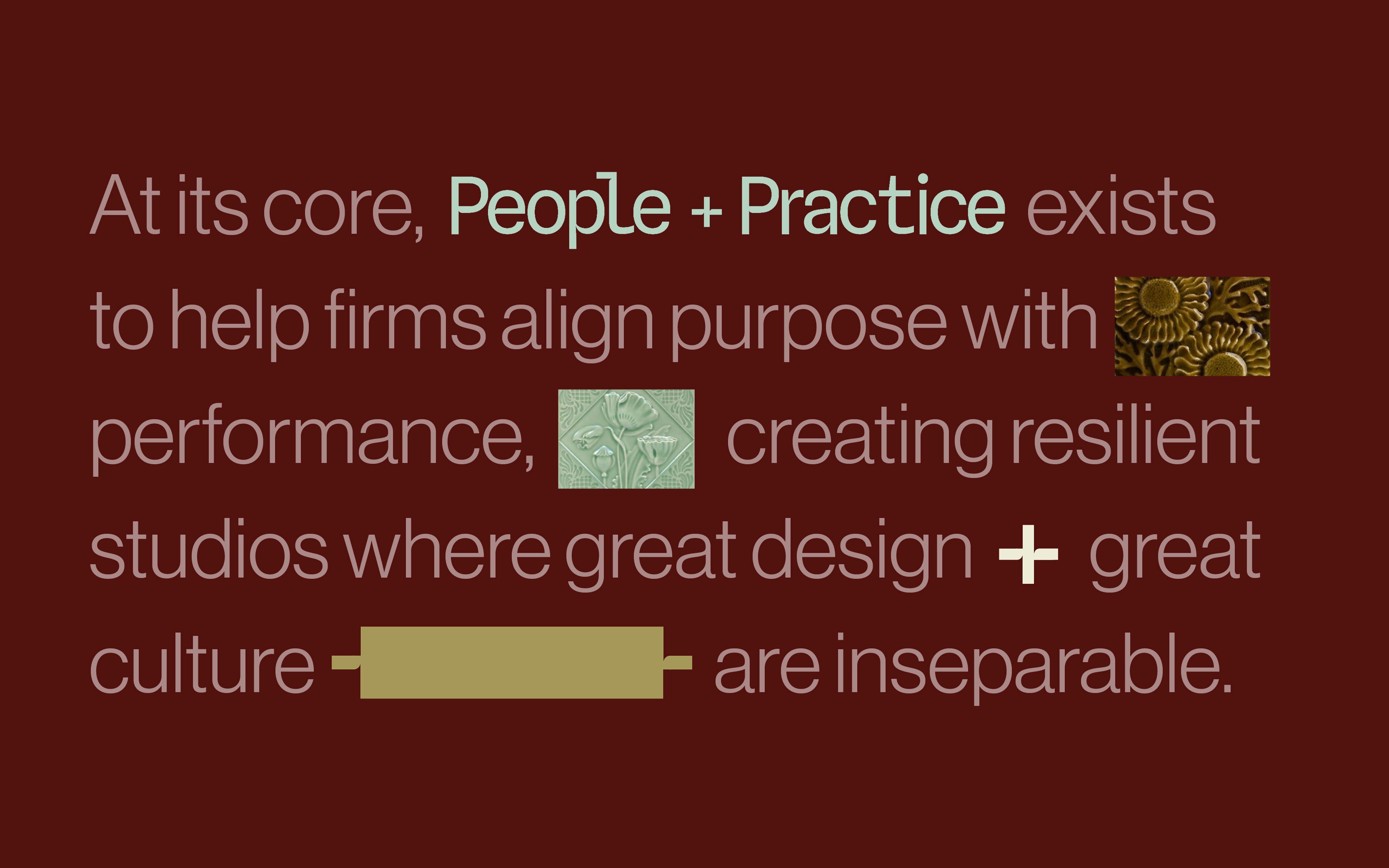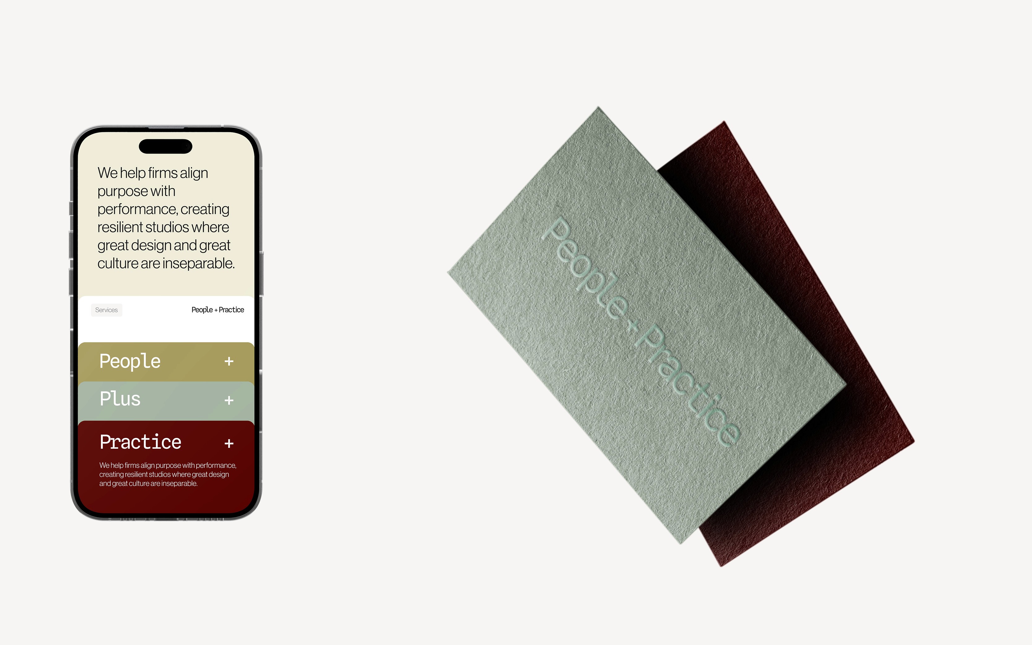 Judith reached out to work on pulling together a brand identity for her new studio, People + Practice. With over 20 years’ experience as an architect, Practice Director, and coach, Judith has seen how hard it is to balance leadership, operations, and culture, and how powerful it can be when you get it right. With People + Practice she helps firms build resilient businesses where people thrive, leaders lead with clarity, and culture is more than just words on a website.