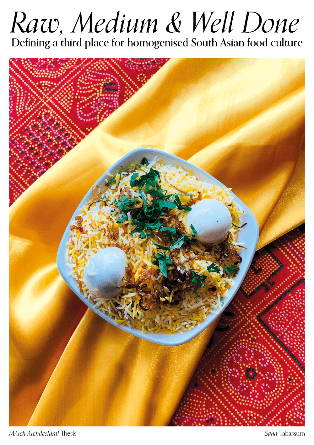 The basis of this thesis explores the characteristics of food spaces through a shared analogy of the terms raw, medium, and well-done. The terms refer to various levels of spaces ranging from local takeaways to fine-dining restaurants and are explored through a first-hand critical investigation. These ‘third places’ (Oldenburg, 2005) offer an environment in which authentic food is eaten, cooked, and shared, but importantly, ones that serve as a cultural anchor for migrants in a diverse city such as London.